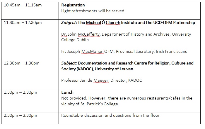 Registration has now opened for our one-day seminar ‘The Future of Church Archives: Opportunity or Crisis’ which will be held in St. Patrick’s College, Drumcondra, Dublin 9 on Saturday, 28 February, 2015.